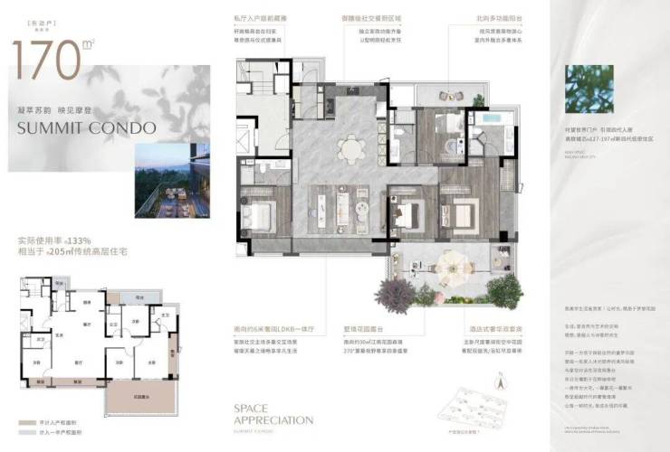 又有170和197平米的大平层,270度的套房计划,把私密性和安闲度做到了极致,真正竣工了“把家安正在花圃里”的梦念。