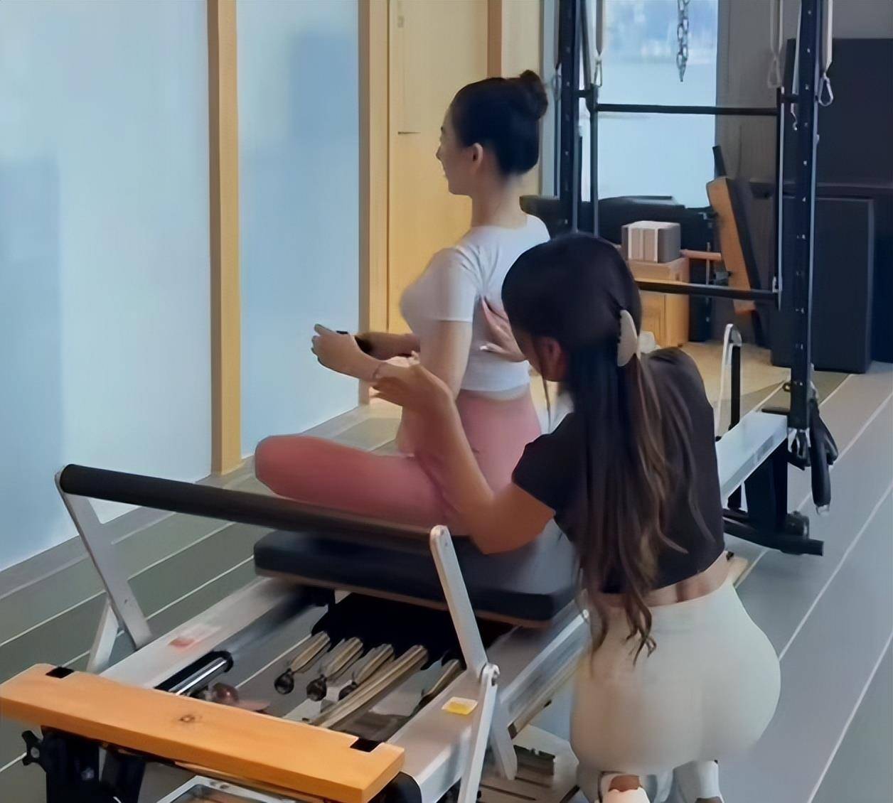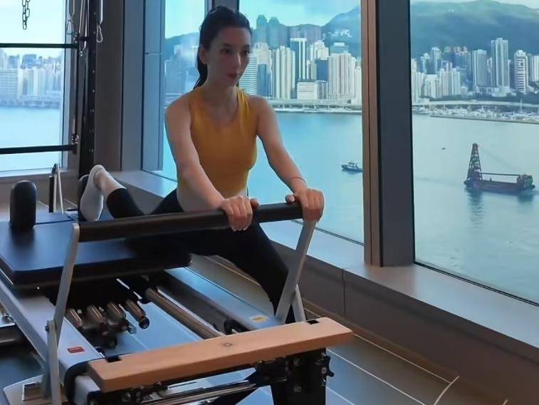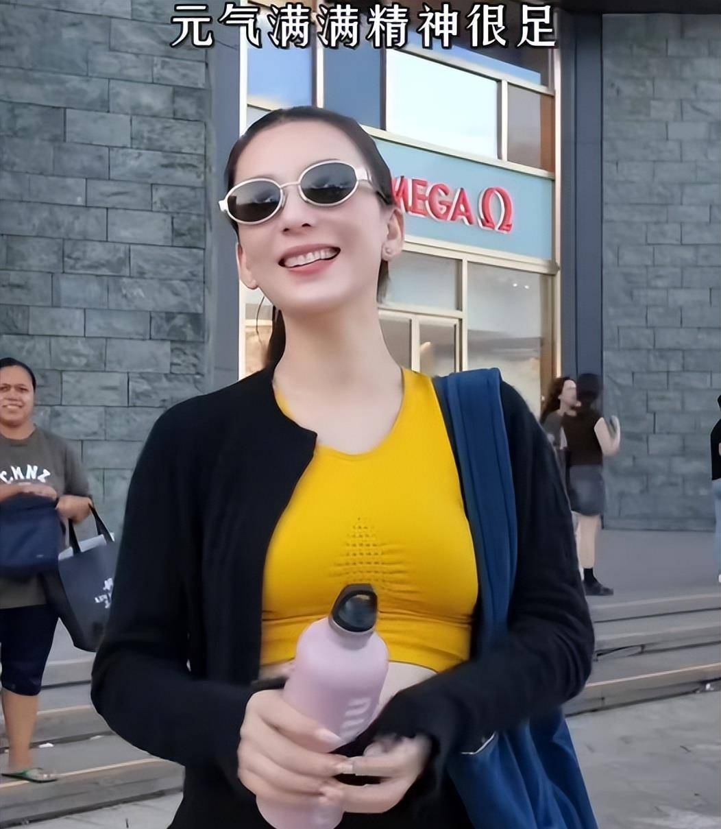 运动不单限于室内。阳光下的她,戴着酷帅墨镜,乐颜比阳光还绮丽,周身发放着自大的光线。特写之下,皮肤光洁紧致,毫无孕期的倦容,唯有被美满浸润的光后。